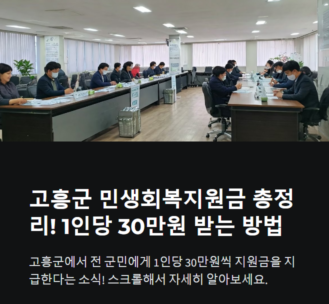 여러분도 이 소식 들으셨나요? 고흥군에서 1인당 30만원씩 전 군민에게 지원금을 지급한다고 해서 주민들의 관심이 뜨겁다고 하더라구요! ㅎㅎ