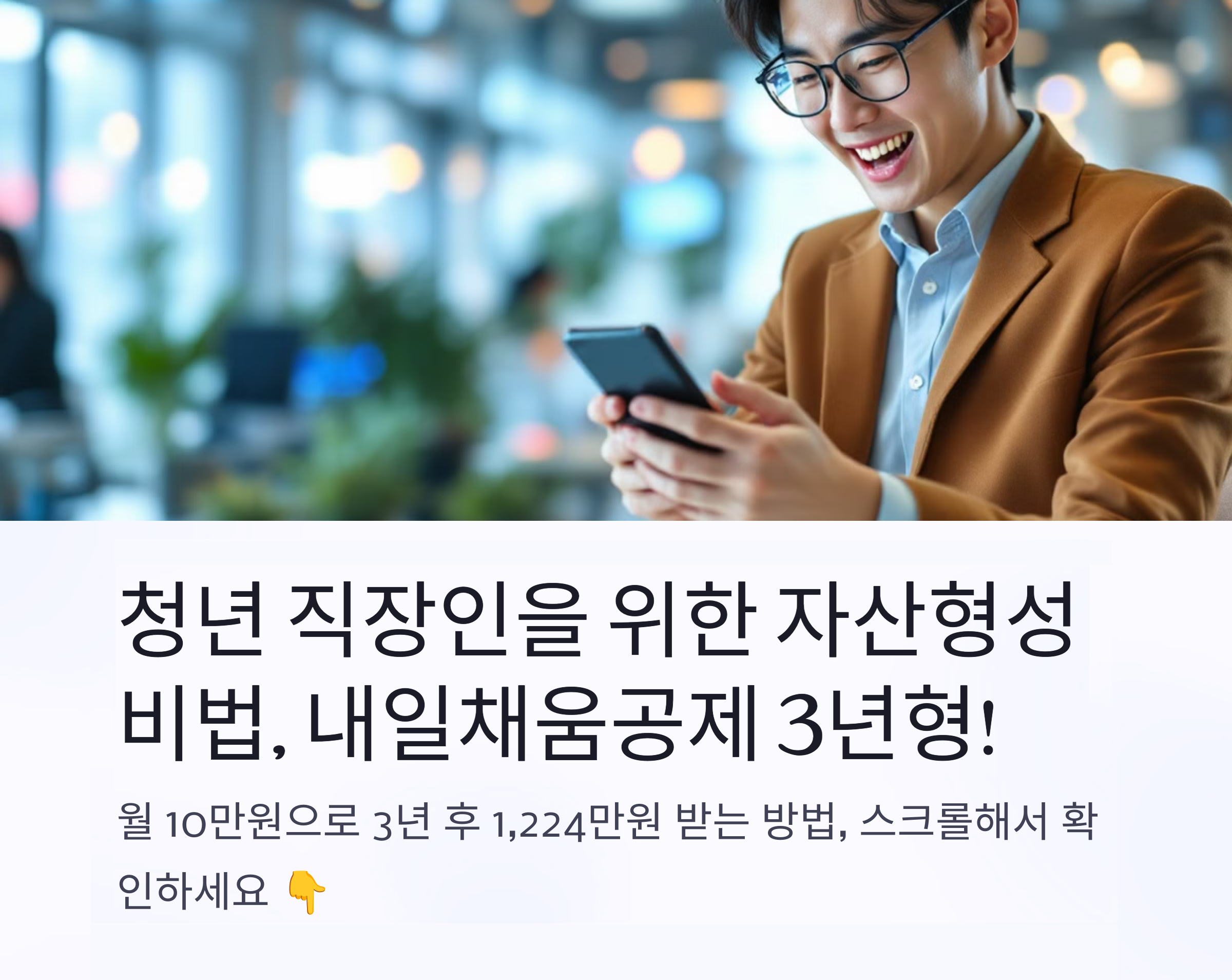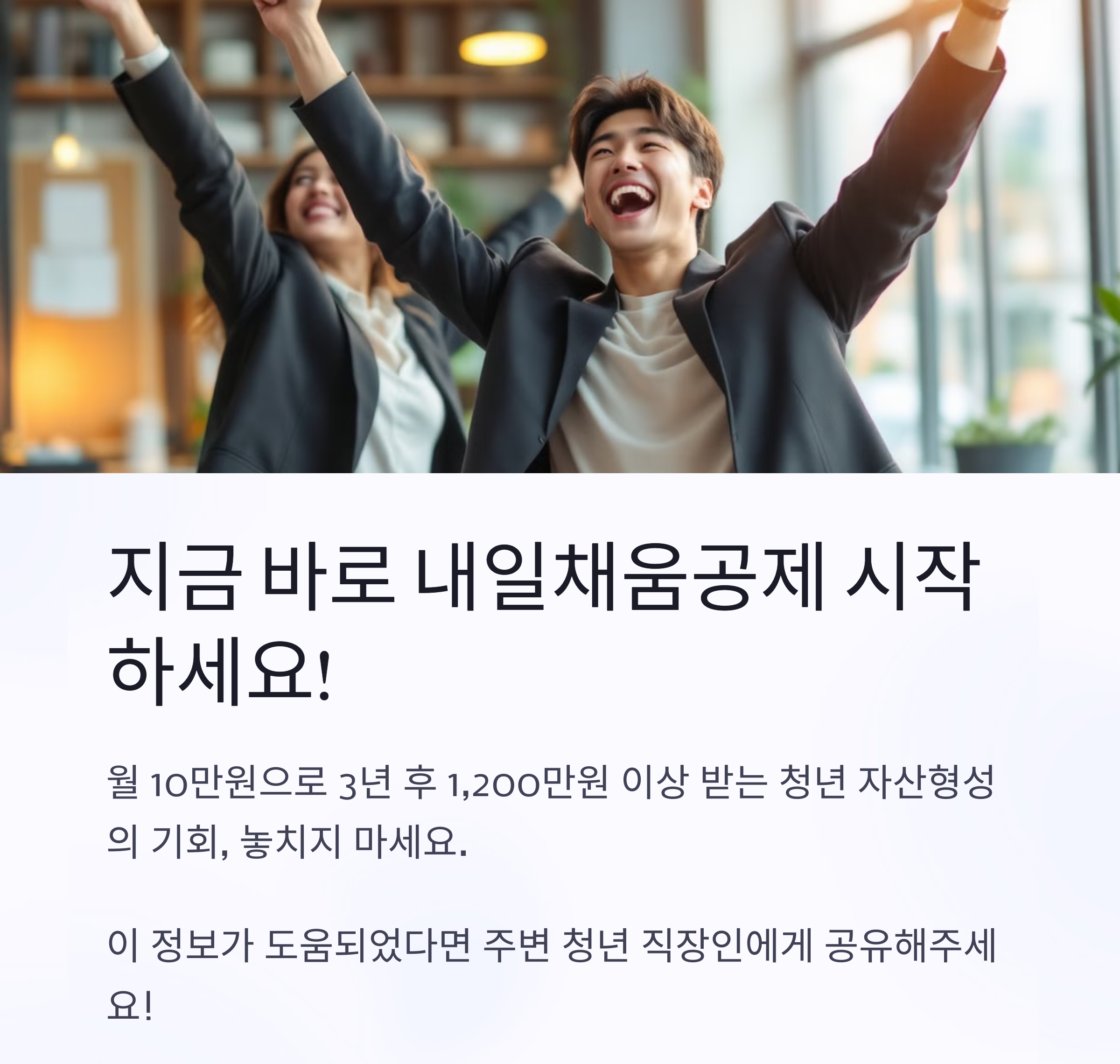 "월 10만원 적립이 부담스럽지 않은데 3년 후에는 천만원이 넘는 목돈을 받을 수 있어요. 회사에서 적극 권장해서 가입했는데 정말 만족하고 있어요!" - 30대 중소기업 재직자