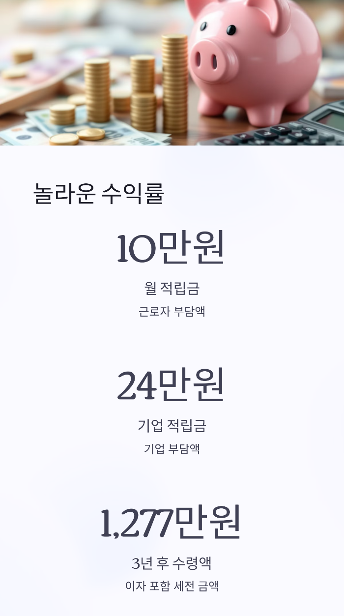 - 총 적립금: 1,224만원 (3년 후 수령)